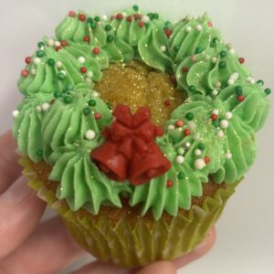 - Vanilla cupcake with wreath decoration icing