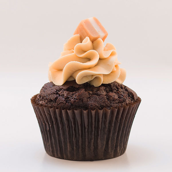 Chocolate cake stuffed with caramel topped with subtle caramel butter-cream and a little jersey caramel on top