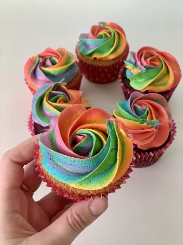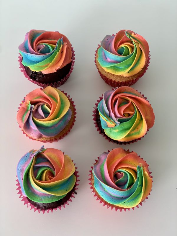 Mix of Chocolate and Vanilla based cupcakes with a Rainbow multitoned icing.